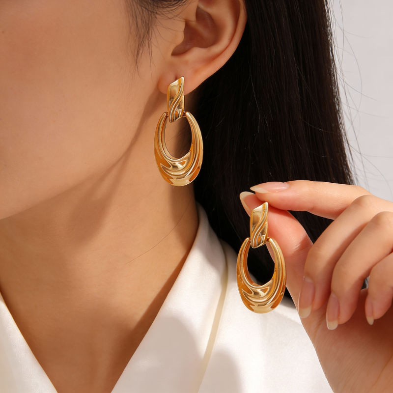 Date Night is designed for special evenings, soft lights, and unforgettable moments. Its sleek gold plated finish adds instant elegance to any outfit. Made with 18k gold plating, anti tarnish and waterproof features ensure lasting shine. A perfect statement earring in Bangladesh for date-ready gold plated earrings in Bangladesh.