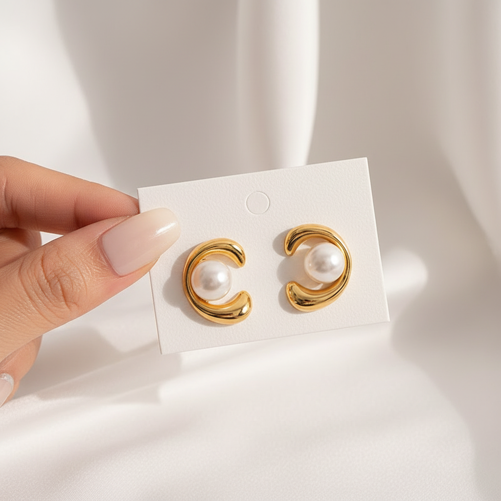 November Moon reflects quiet romance and gentle elegance. The pearl detail adds softness, making it perfect for subtle everyday styling. Crafted with 18k gold plating, this earring is waterproof, anti tarnish, and made to last. A dreamy earring in Bangladesh for lovers of refined gold-plated earrings in Bangladesh.